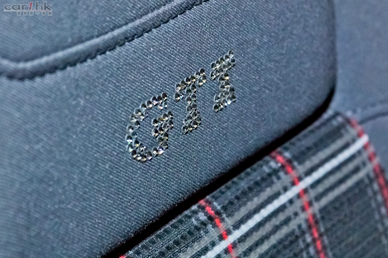 座椅頭枕貼上GTI字樣閃鑽和軚盤後方追加 Turbo 錶。